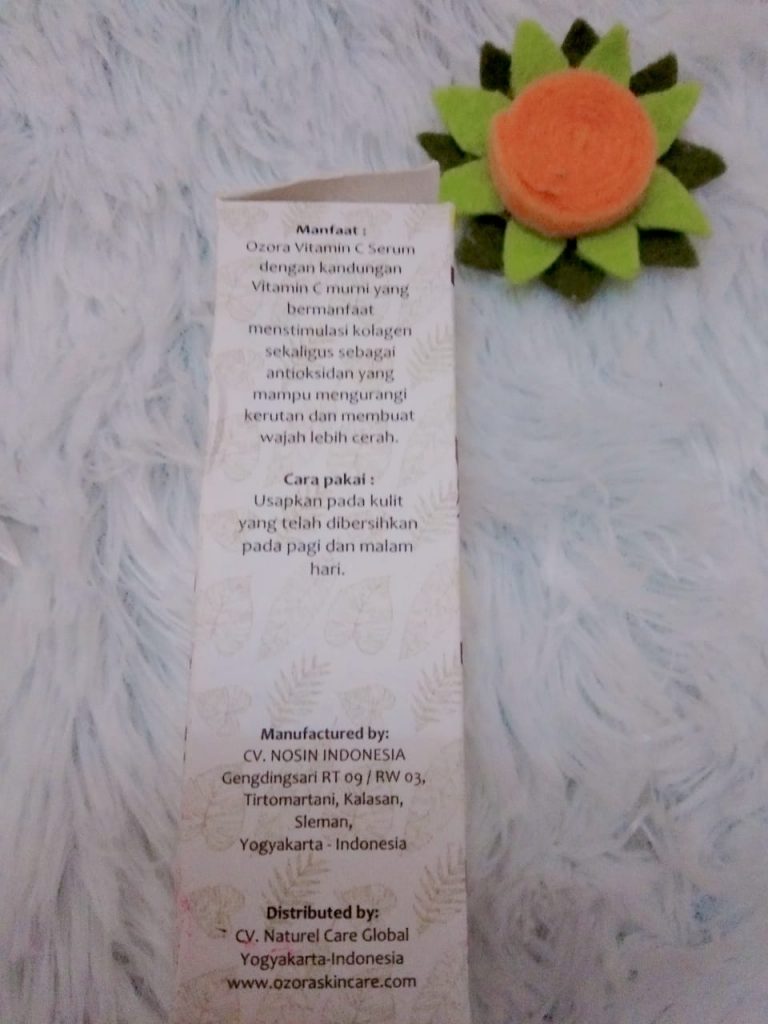 Petunjuk pemakaian Ozora Vitamin C Serum