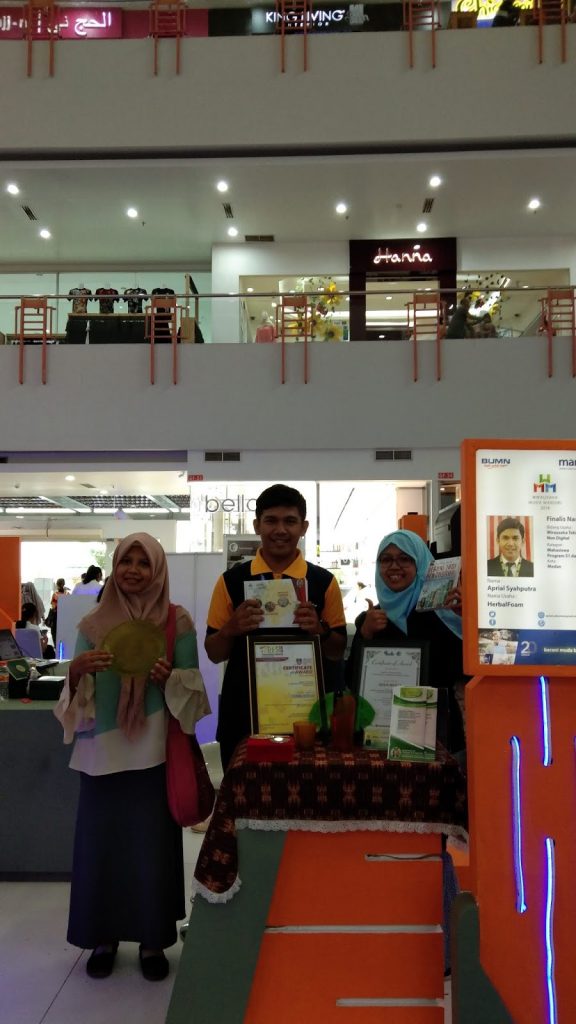 Tak hanya itu, ada stand yang membuat kagum adalah mahasiswa dari Medan yang membuat bungkus makanan semacam foam menjadi bungkus makanan yang ramah lingkungan karena terbuat dari kulit udang, tepung, dan iainnya. Tak hanya ramah lingkungan, tapi juga bisa dimakan.